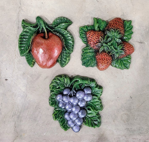 Set of 3 Vintage Kitchen Décor Wall Fruit Sculpture Plaque Art